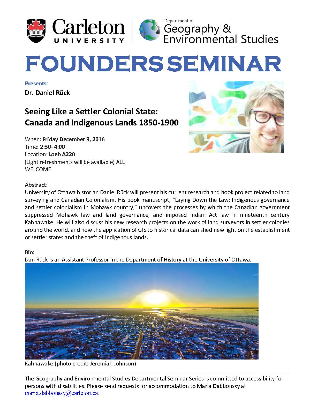 Professor Daniel Rück, along with colleagues Brian Gettler (principal investigator, University of Toronto) and Maxime Gohier (Université du Québec à Rimouski), was recently awarded an Insight Development Grant by the Social Sciences and Humanities Research Council (SSRHC). The project is titled “Indian Affairs and Confederation, 1860-1876” and aims to spur debate on the history of Canadian state formation through a reassessment of Indian Affairs’ position within the state at a time of sweeping institutional and political change. This project will open a critical portion of the Department of Indian Affairs archival record to analysis for the first time. From 1862 to 1872 Indian Affairs used an idiosyncratic system for organizing its archives that is not understood by most researchers today. Since scholars have been unable to find their way through this mass of documentation (on the order of 40,000 pages), no analysis of Indian Affairs’ role in Confederation has been undertaken until now. This digital history project will make these documents searchable and available for the first time, and will open up new understandings of Indigenous-Canadian relations at the time of Confederation.